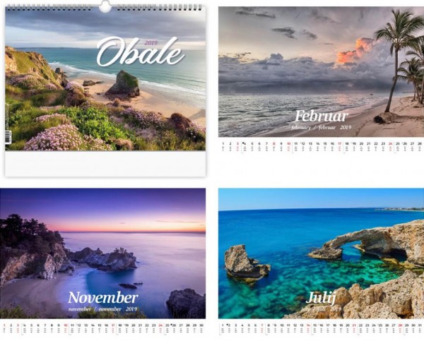 koledar Obale 2019, 46x39 cm, 6 cm za dotisk SLO/ANG/NEM, lune, slo. prazniki